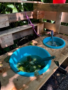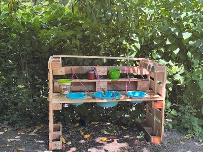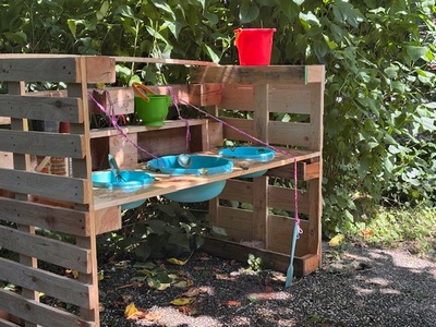 Die Schulfirma Garten hat für die Kinder in der Primarstufe im Schulgarten eine Matschküche gebaut.